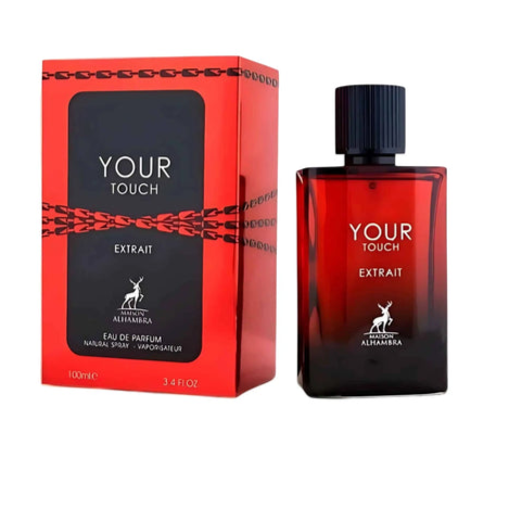 ادکلن Your Touch Extrait از برند Maison Alhambra عطری مردانه (و در بعضی منابع یونیسکس) با غلظت بالا (Extrait de Parfum) است که ترکیبی جسورانه از نُتهای ادویهای، میوهای و چوبی–گُرما دارد؛ رایحهای تأثیرگذار که برای استفاده در شب یا مواقع خاص طراحی شده است.